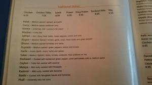 The staff were very attentive to start with. We ordered some papadums which came out almost immediately. We were pleased to see a good selection of sauces – Mango chutney, onion salad, lime pickle and red onion. Each was presented in white china pots and with generous portions. The sauces were all pretty average by none of them offended our pallet.