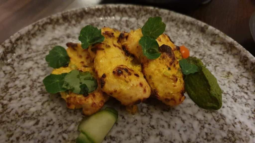 We decided to order Saffroni Chicken, Papdi Chaat, and Kasudi Jhinga king prawns for starters.