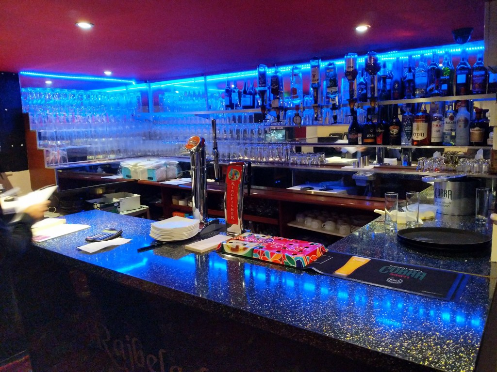 I thought the bar at the back was very striking and vivid when lit up, especially with Cobra and Kingfisher on tap.