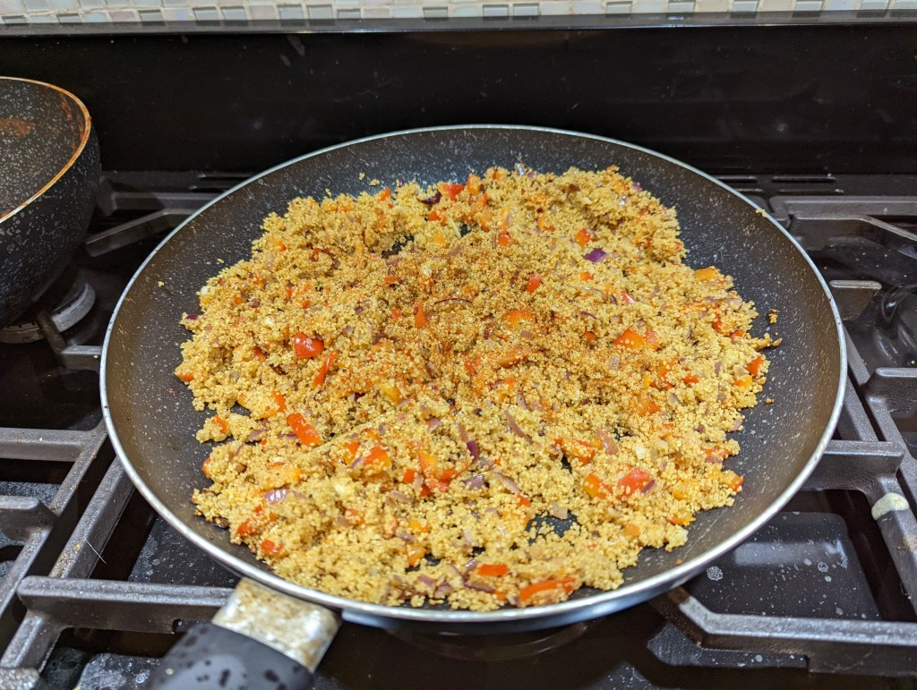 Add the cous cous and fry for a little longer.