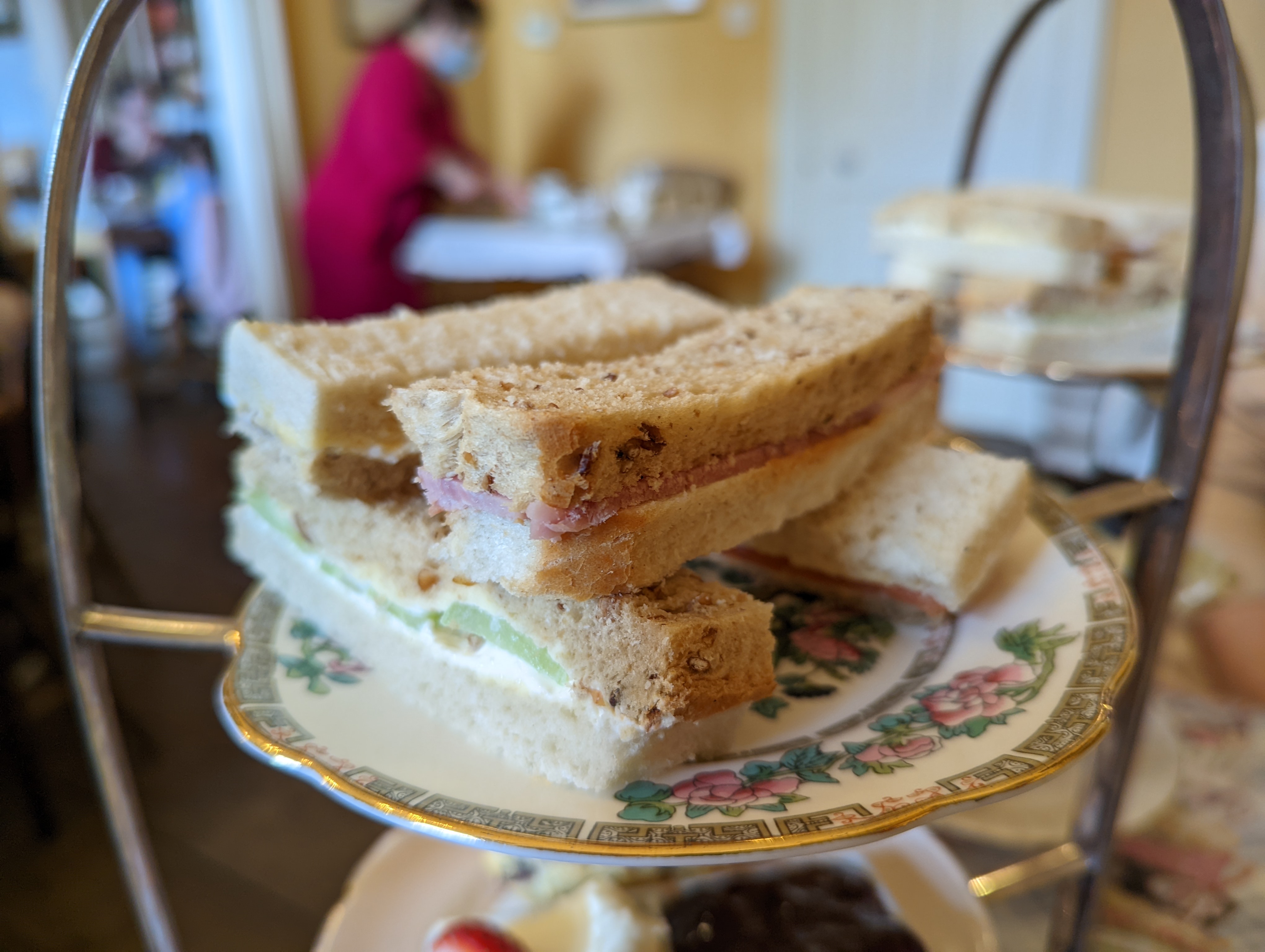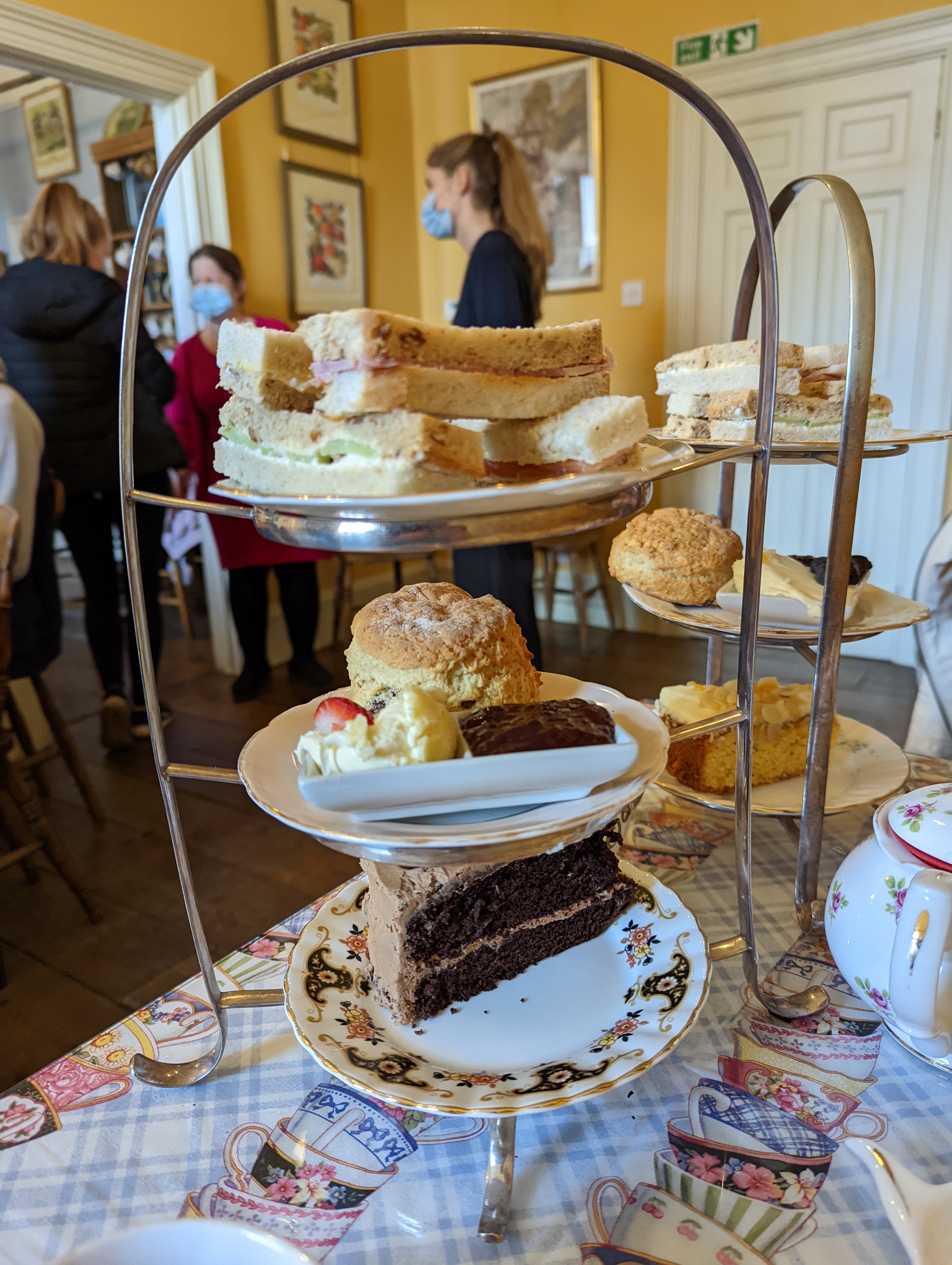As the towers came out they looked fantastic. Served with the sandwich fingers on top, scones in the middle, and the cake at the bottom.
