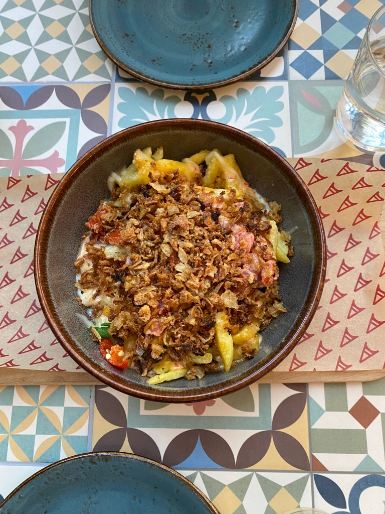 In addition to their signature flam-kuche, Amelie also had an exciting range of starters. We were bummed to find out that they were out of ‘cheese cushions’ – yes, they are exactly what they sound like – but were very pleased with our order of prawns and dirty fries (sans bacon). The prawns were delicious and fresh, and came with a pillowy brioche which was the perfect accompaniment for the garlic butter. The dirty fries portion was quite generous, and I loved how well spiced and cheesy they were – would strongly recommend!