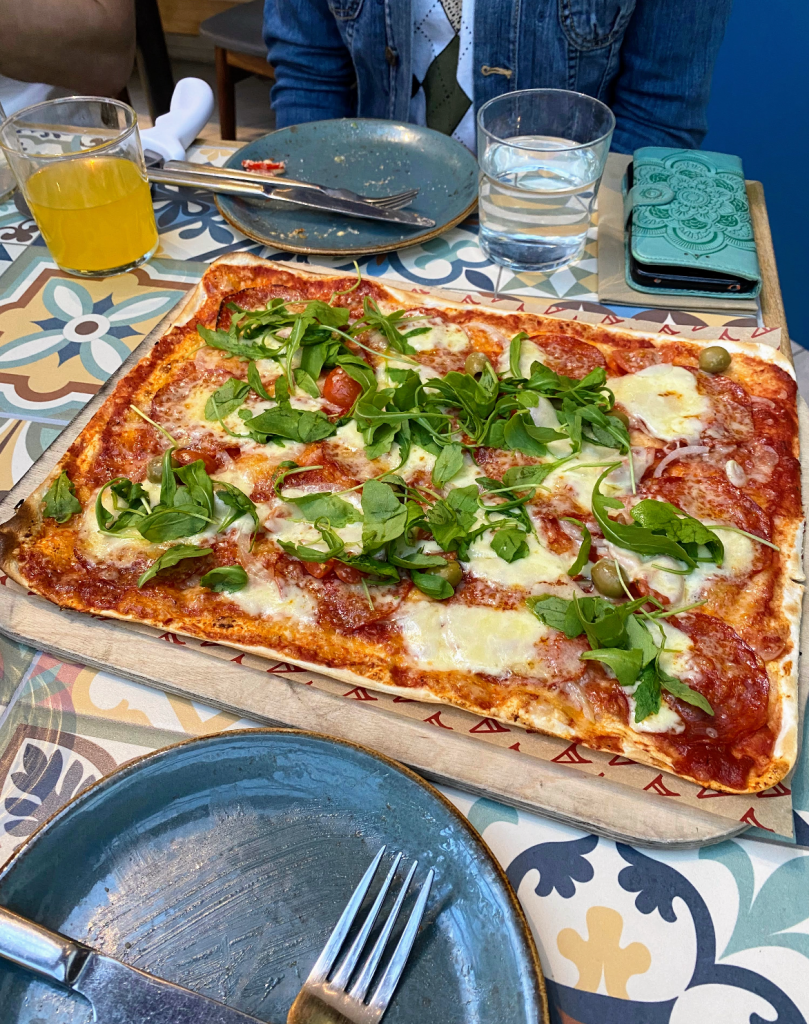 We couldn’t pick just one favourite as we liked both the mushroom and the chorizo and mozzarella equally. The mushroom flamkuche came with a generous topping of mushrooms (duh-uh), sliced onions, and – the star of the show – garlic butter. The chorizo and mozzarella had rocket, olives, and sliced tomatoes, in addition to chorizo, and of course, mozzarella. I know I’ve mentioned this before, but it was remarkable how thin and crispy the base felt, and how well the toppings complimented it.
