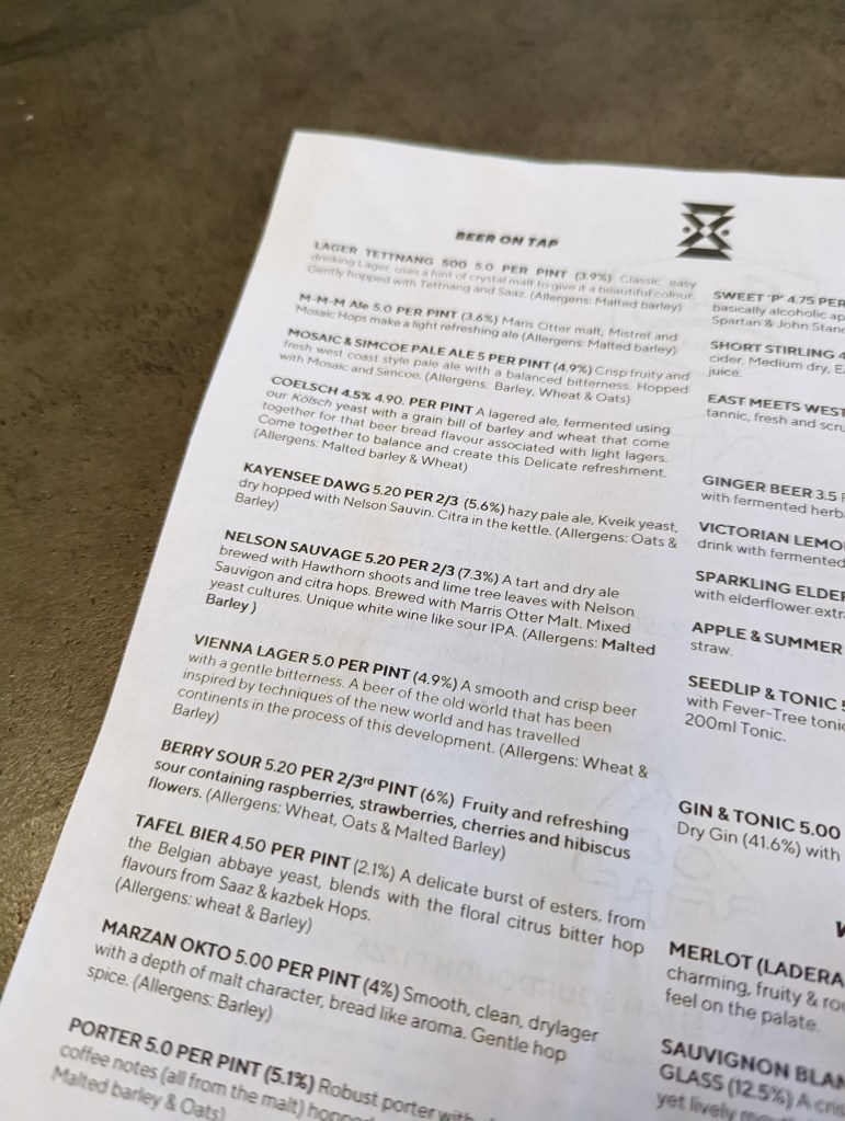 There was a great selection on the menu including West Coast style pale ales, crisp lagers, fruity beers, and porters. There was something for everyone here, also including gin, wine, and ginger beer.