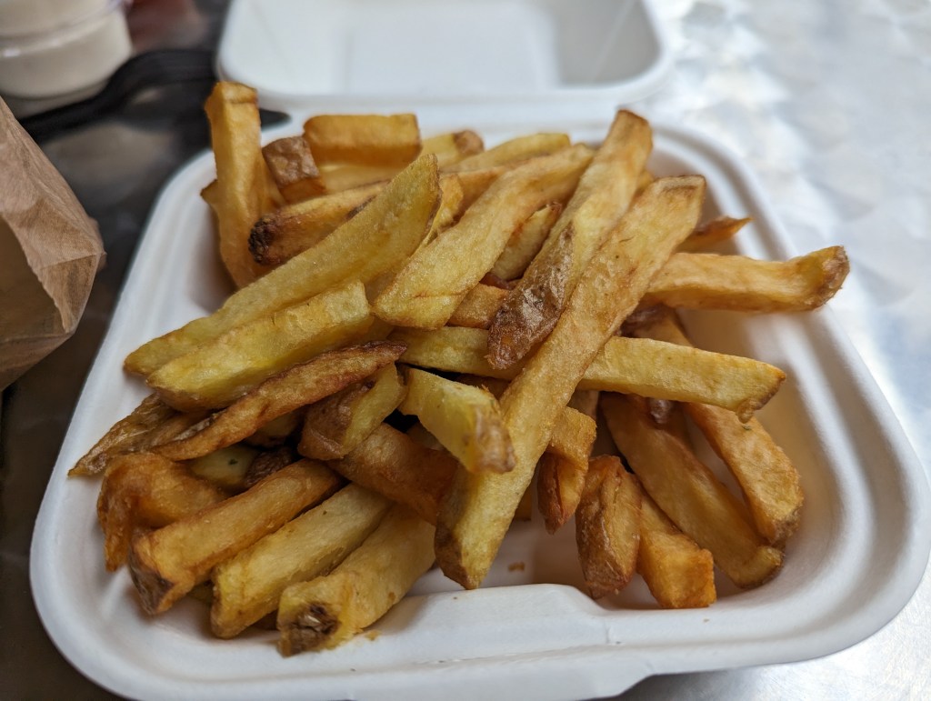 My wife and I were both in agreement that the chips were (surprisingly) the star of the show. They are simply hand cut chips served crispy but they really stood out to us. Portions were decent for £2.45 but also came with some absolutely delicious (what I assume is) home made tomato sauce and garlic mayo. I highly recommend it.