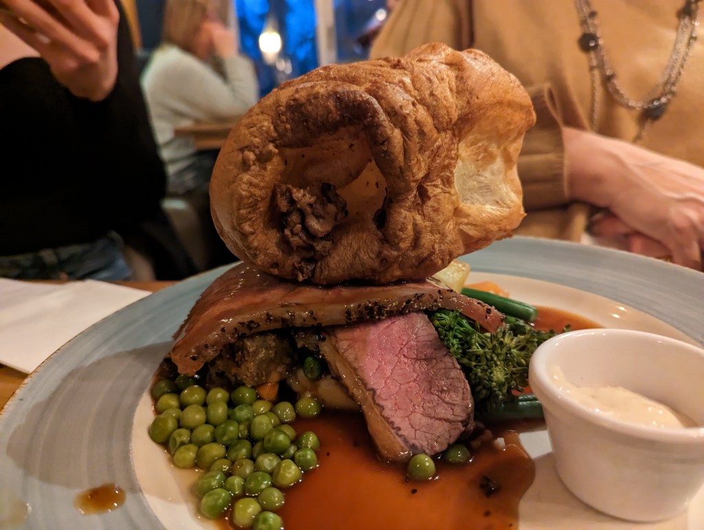 Looking across the table, my mum’s roast beef looked glorious! The Yorkshire pudding was nearly the size of my head and the beef looked beautifully pink.