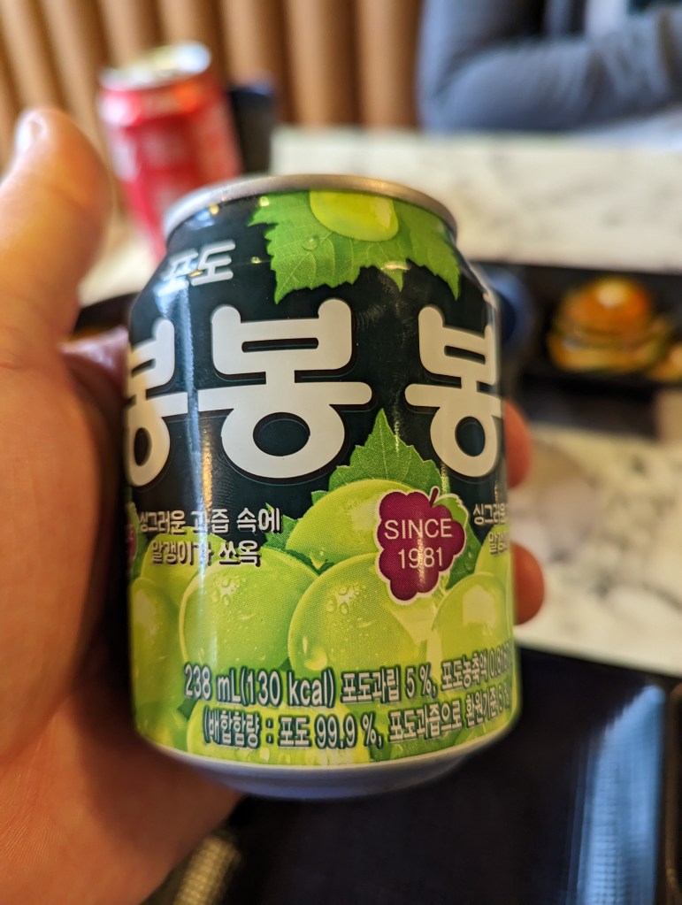 I decided to go full Korean and try a can of ‘Bong Bong’. This is a very sweet grape soda. In fact, it even had lumps of grapes in the drink! I absolutely loved it! Surely that counts towards your 5 a day? 😂 Either way, I found it a great novelty being able to try some Korean products that you would unlikely be able to find anywhere else in the UK.
