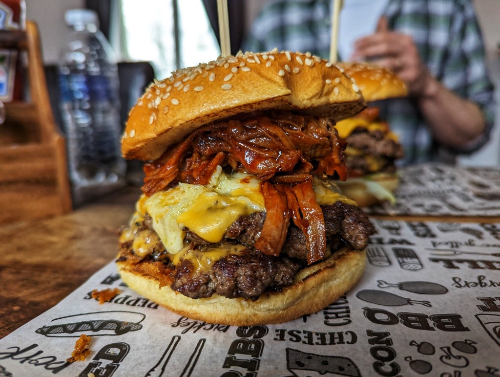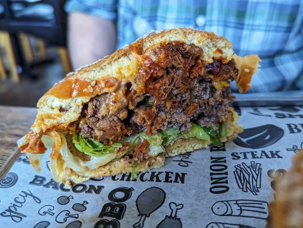 The Cheesy Pig consists of a double smash patty, bacon, onion, cheese sauce, and BBQ pulled pork. There is a warning label with this burger suggesting that it “can get messy”, so I braced myself for a disintegrating burger (like my last visit to Herbie’s) but everything held together well. I love a messy burger and they seemed to get the balance right!