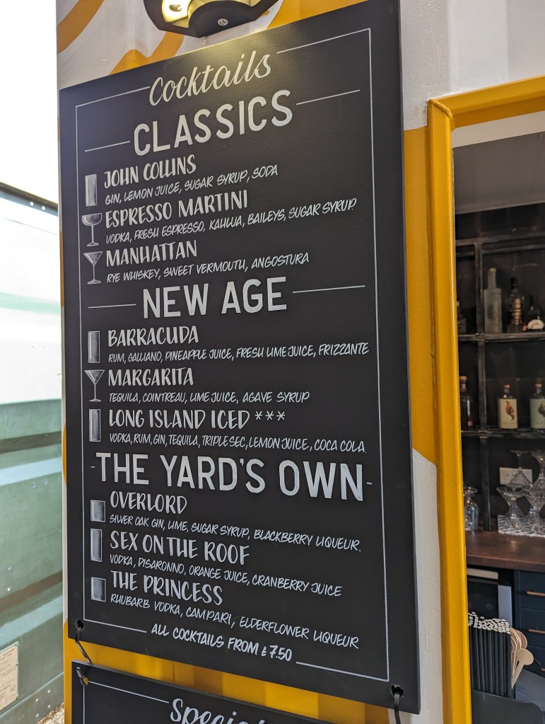 With that said the coffee, beer, and cider are all fantastic. You know the drink is good when you arrive home and start looking up what you had on the internet. I feel that going for a drink is a real strength of The Yard, especially in the summer.