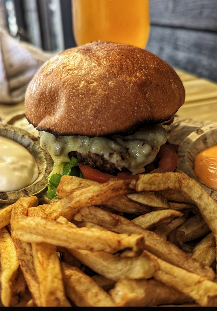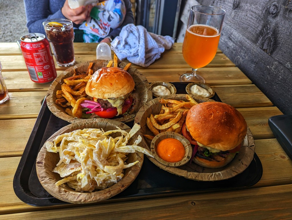 We both went for the smash burgers. These came to £12 each and were accompanied by a side of chips. The electronic alert made life easy and meant that we could sit down at the table and enjoy our drinks without having to worry about missing our order.