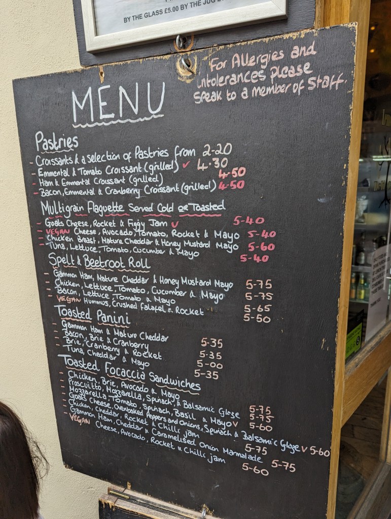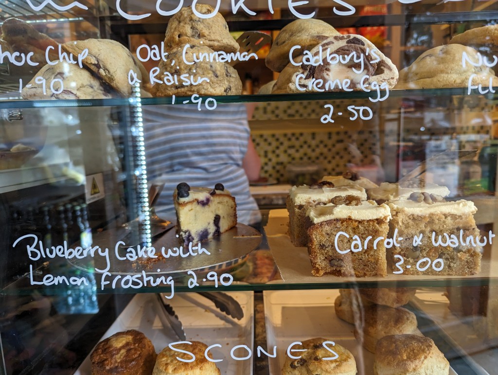 The cake selection isn’t huge but there were several things which stood out. Prices for cakes hovered around the ÂŁ3 mark and cookies ÂŁ2. The staff were friendly, chatty, and prompt.