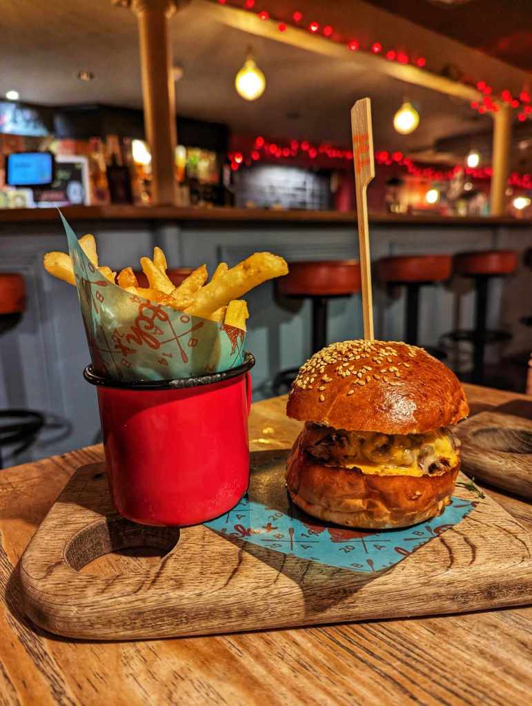 The presentation was really good. The chips were served in a red metallic cup that was sat with the burger on a wooden chopping board. When it comes to food like burgers, I prefer a wooden board to a plate…or a slate 🙄