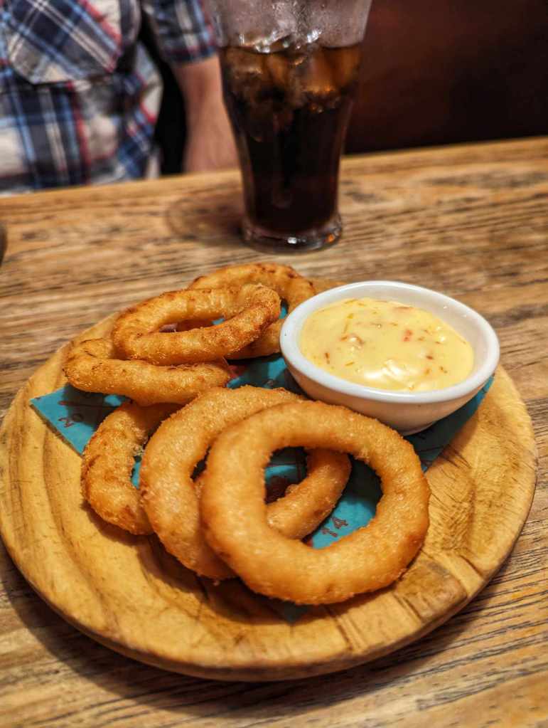 There aren’t many choices in terms of sides, with onion rings, chips, and dip as the only options.