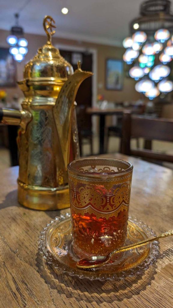 Speaking of tea, by this point we were absolutely stuffed, so ended the evening with some loose leaf mint tea. This was presented in a beautiful gold plated samovar that assimilated perfectly into the theme of the restaurant. It made a really nice end to the meal and added a touch of class. More importantly, it gave us both time to digest our food.