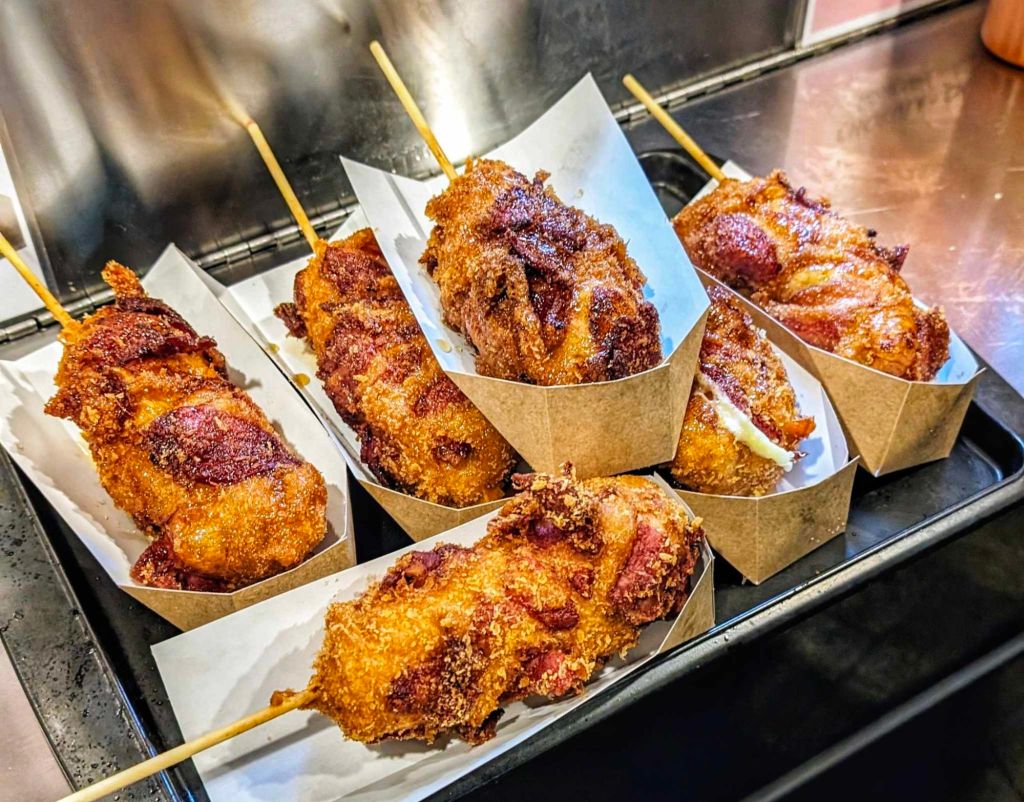 All options are all made of sausage but you are given the option to have a “half and half”, meaning the corn dog is filled with one half sausage and one half mozzarella. You can also get ones entirely filled with mozzarella.
