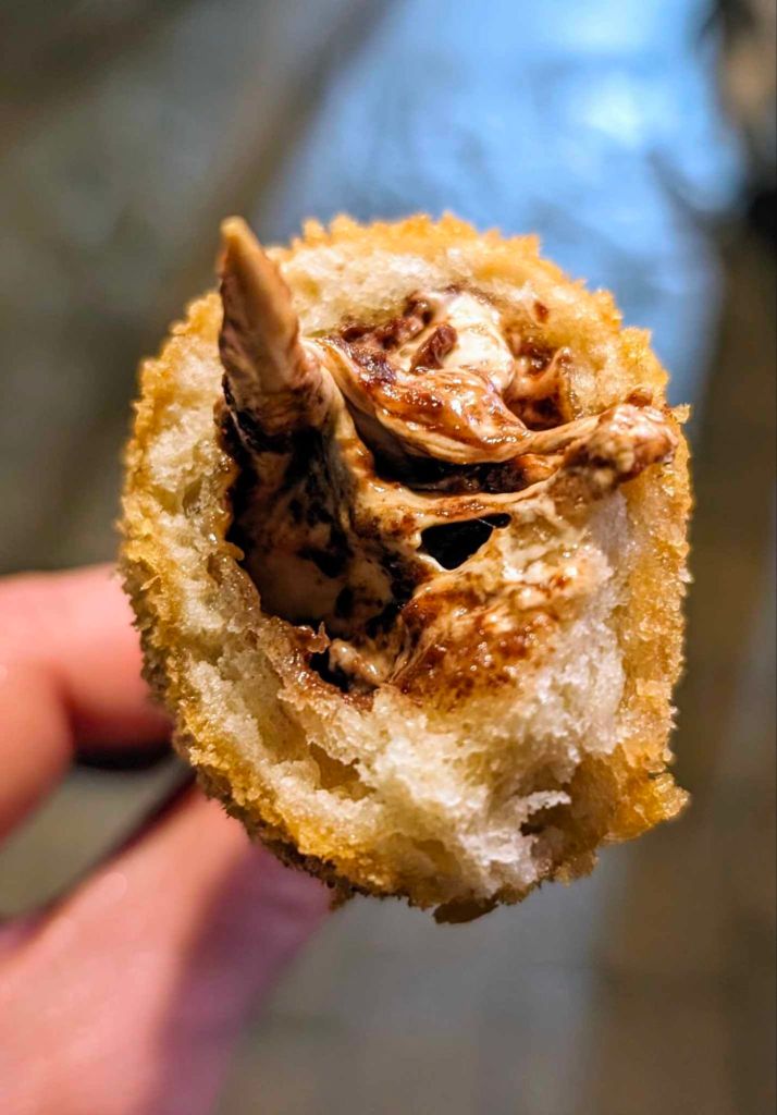 This was a simple idea and worked so well. I mean, it’s hard to complain when it’s free but I would have been happy to pay up to £4-5 for this, no problem. It was lighter than its savoury corn dog cousin but was such an original way of eating dessert. The Milky Way had melted through the frying prices and turned into a warm melted chocolatey mess. Lovely!
