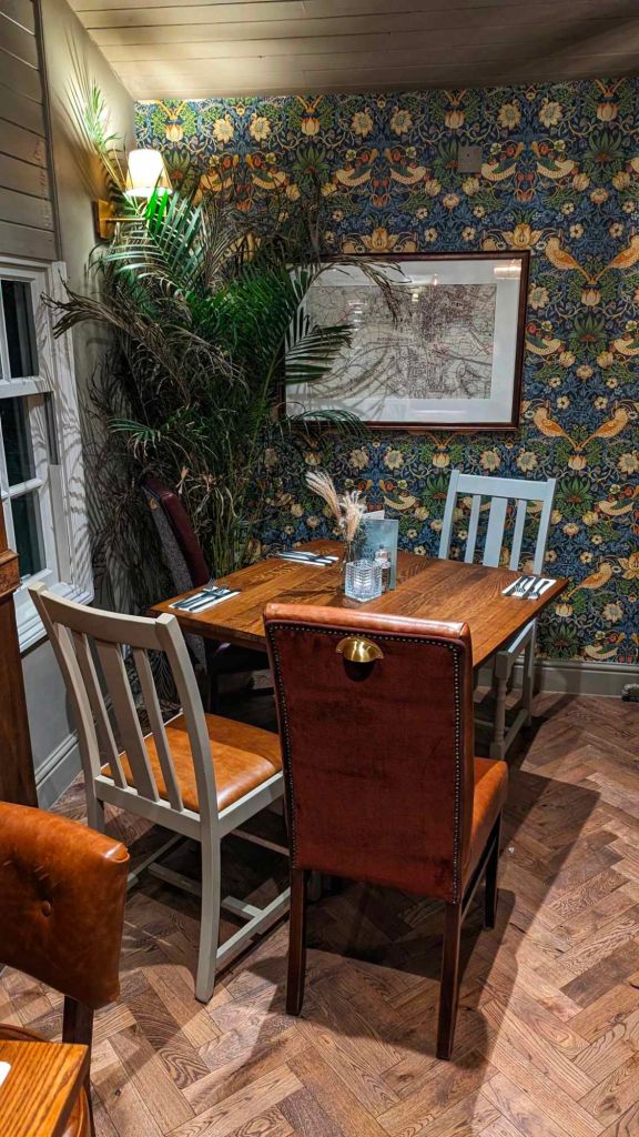 Upon entering, you immediately noticed the interior. It has a rustic yet traditional living room feel. It’s clean, pleasant, and has a warm familiarity that you would feel comfortable bringing friends and family too. It is dog friendly, has free parking with EV charging, and a beer garden.
