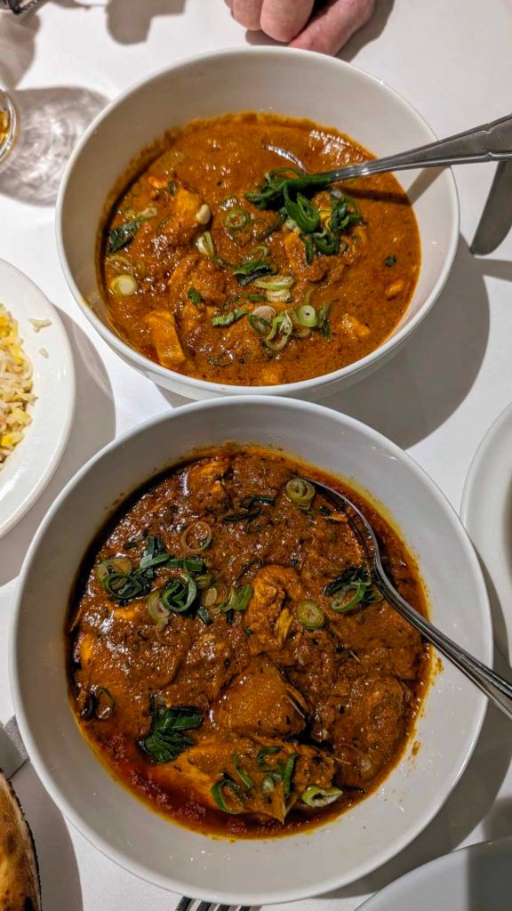 My father had the chicken madras. It had a very similar presentation as my vindaloo (yup, with spring onions) only with a slightly lighter colour. I wasn’t able to taste this dish myself but it was well received by my dad, who is a seasoned veteran with madrases.
