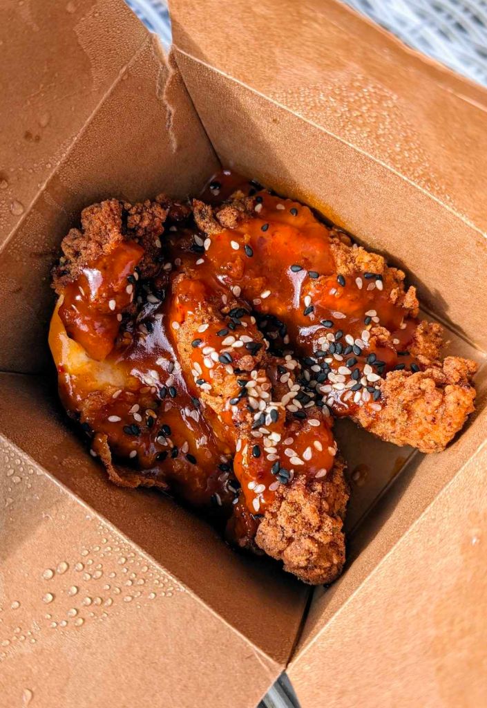 The sesame Gochusang chicken strips were incredible. My wife took a particular liking to them and I can see why. They were big and juicy with a nice crispy skin and slavered in a sweet honey sauce that came with a fiery finish.