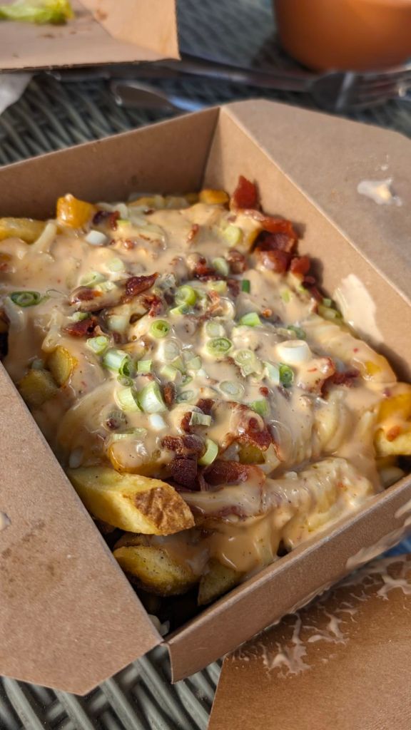 We ordered two boxes of loaded fries. These are served with thin cut chips and caked in sauce. One box had bread crumb fried chicken which made it a balanced meal in it’s own right. Portions were generous and presentation looks great, though towards the end the chips started to get a little soggy.