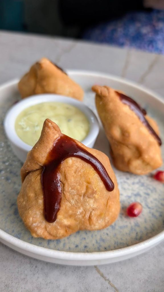 We couldn’t visit without exploring the Indian street food menu. We opted for two choices, a personal favourite of mine – the panni puri, and shingara.