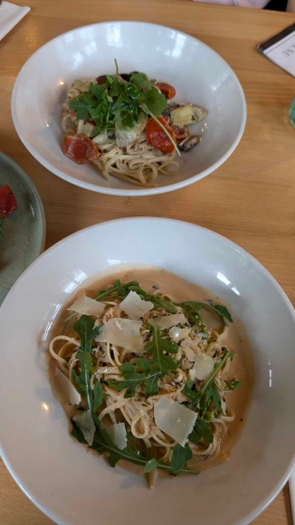 My crab, tarragon, and lemon linguine was excellent. It was made with creme fraiche, rocket, and shaved parmesan.