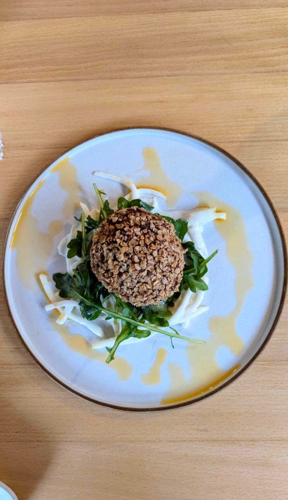 First was the vegan feta, basil and polenta fritters with a yoghurt sauce. Frankly, I couldn’t believe these were vegan. They have crispy skin with a warm fluffy centre which are then cut into large meaty chunks.