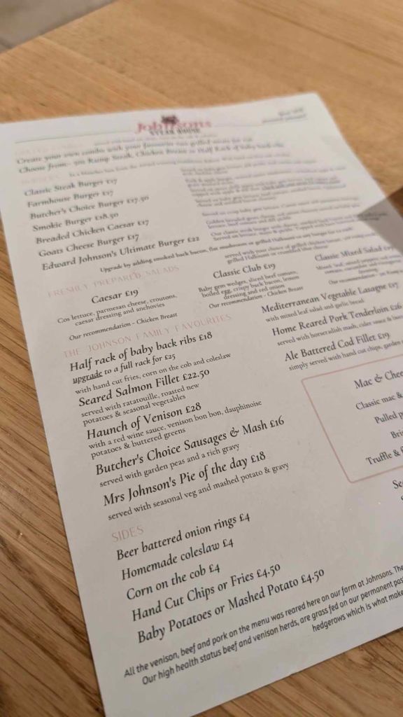 The steakhouse is the only place at Johnson’s I have never visited. I know how good their butchery can be because I have visited numerous times before, so I was itching to visit and see what they could offer as a dining experience All their produce is locally sourced and 80% of their meat is freshly butchered from their own fields. There aren’t many places that can make such a claim.