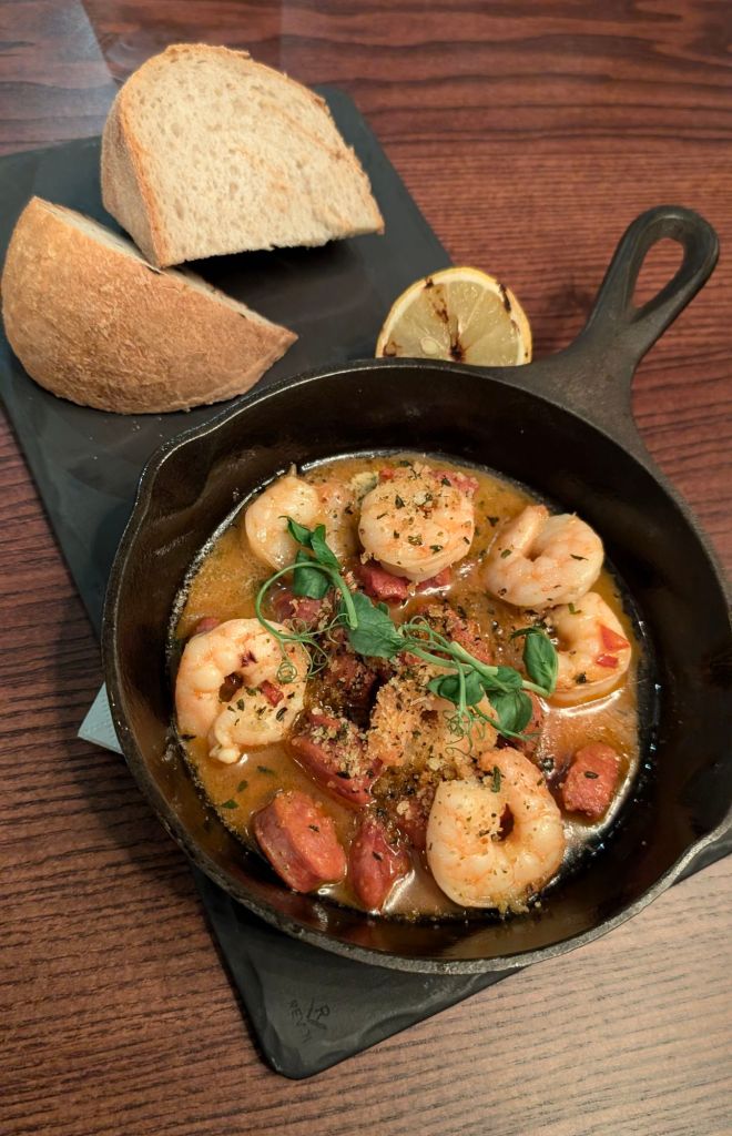 I started off with a garlic and prawn chorizo dish. This was served on a black slate and comes with garlic, chili powder, and sour dough bread for dipping. The portion was a decent size with the chorizo being particularly plentiful. I was pleasantly surprised by the spiciness of the dish. It was a little too spicy for my guest but I thought it was incredibly refreshing for a restaurant like this to take a risk. Maybe the menu wasn’t as safe as it seems?