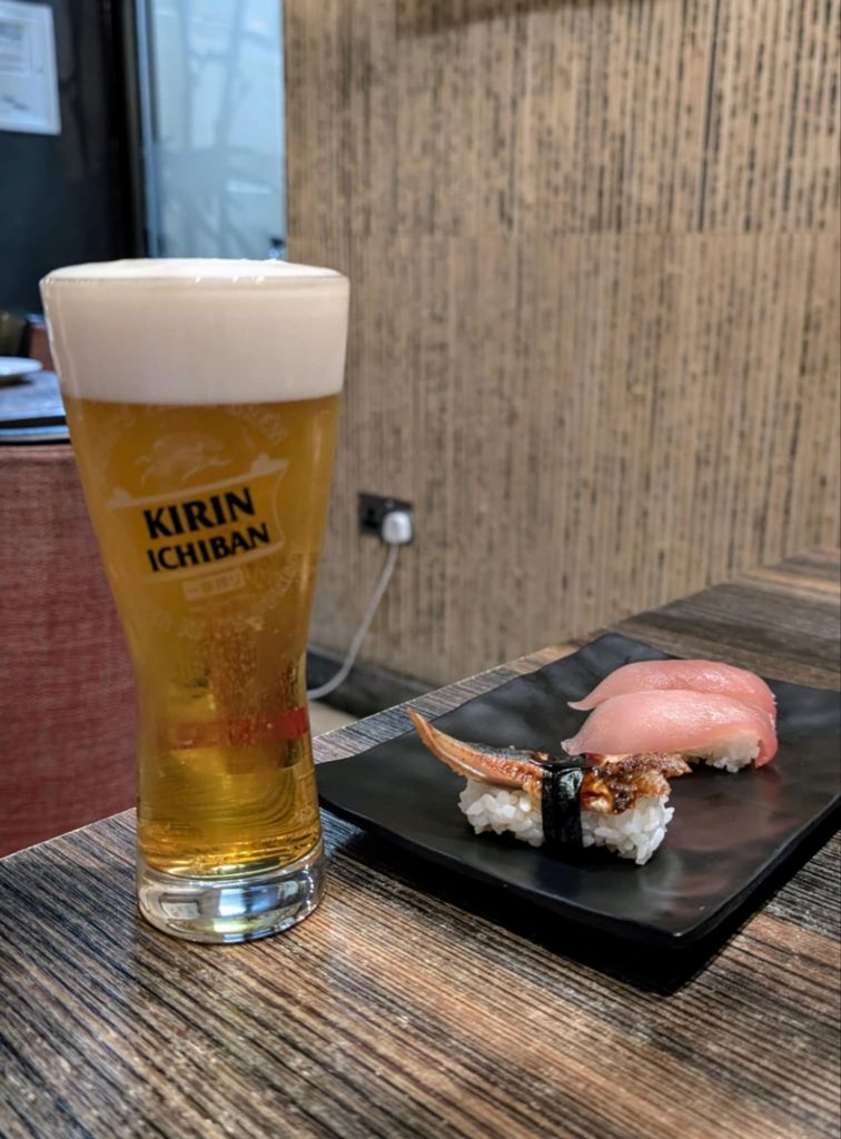 I started myself off with a glass of Kirin beer on draft and my first 6 orders. We started with the sushi before moving onto the other side of the menu.
