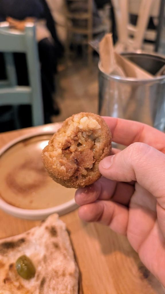 I opted for the Ragu Arancini, a popular Sicilian dish made as a rice ball in an outer layer of breadcrumbs, which are then stuffed with ragu and deep-fried.