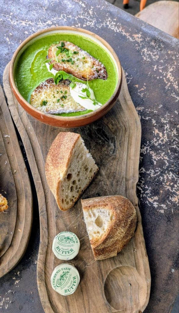 The asparagus soup was a classic example of this. It came served with spinach and creme fraiche on a charming wooden board with bread & butter. It was absolutely beautiful!