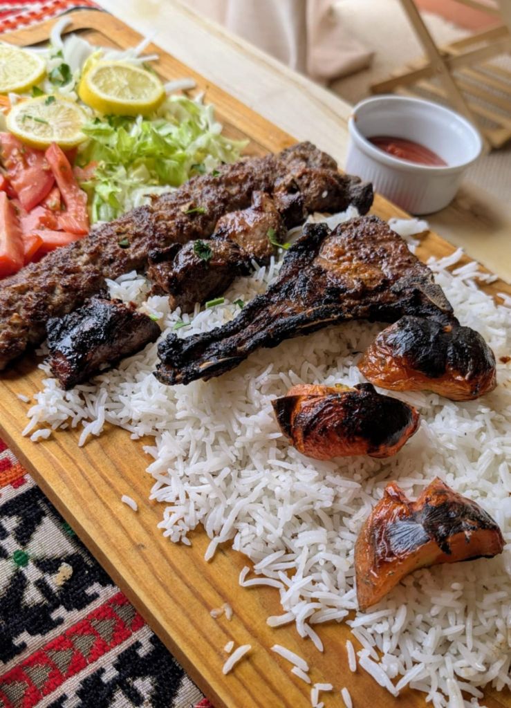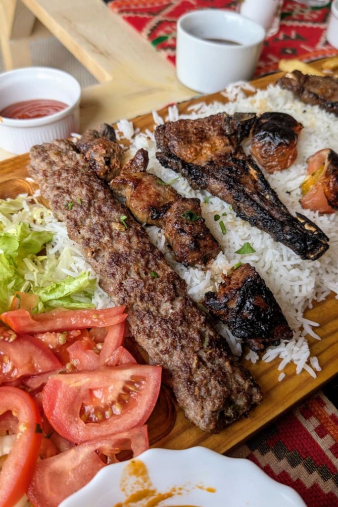 At the very heart of the platter was chargrilled lamb chops, sheesh kebab, and chicken joojeh. Each succulent piece was cooked fresh to order over an open flame located in-house, then served atop a fluffy bed of rice with a generous helping of mixed salad.