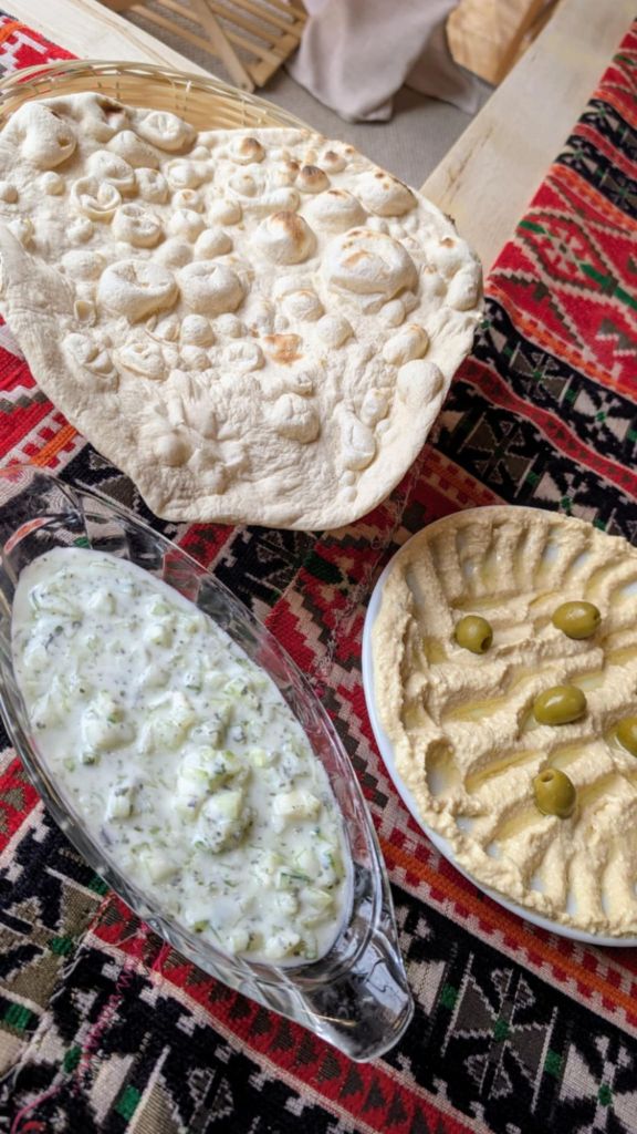 To start, we were presented with a selection of homemade hummus and something intriguing called ‘mast-o-khiyar’, served alongside freshly made pita bread. It was my first taste of mast-o-khiyar – a wonderfully refreshing blend of chopped cucumbers and herbs mixed with thick yoghurt, truly the perfect summer snack! The hummus was equally delightful, with a buttery-smooth, delicate, and light texture that made it ideal for scooping.