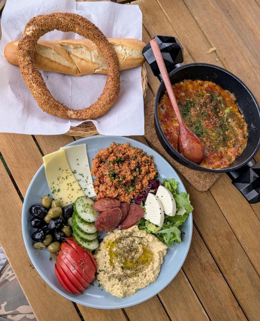 What I love about a Turkish breakfast is the sheer variety of ingredients, which allows you to create your own unique combinations. I particularly enjoyed putting the cheese, Turkish sausage, tomatoes, and salad into the bread to make a makeshift baguette but the combinations and possibilities are endless.