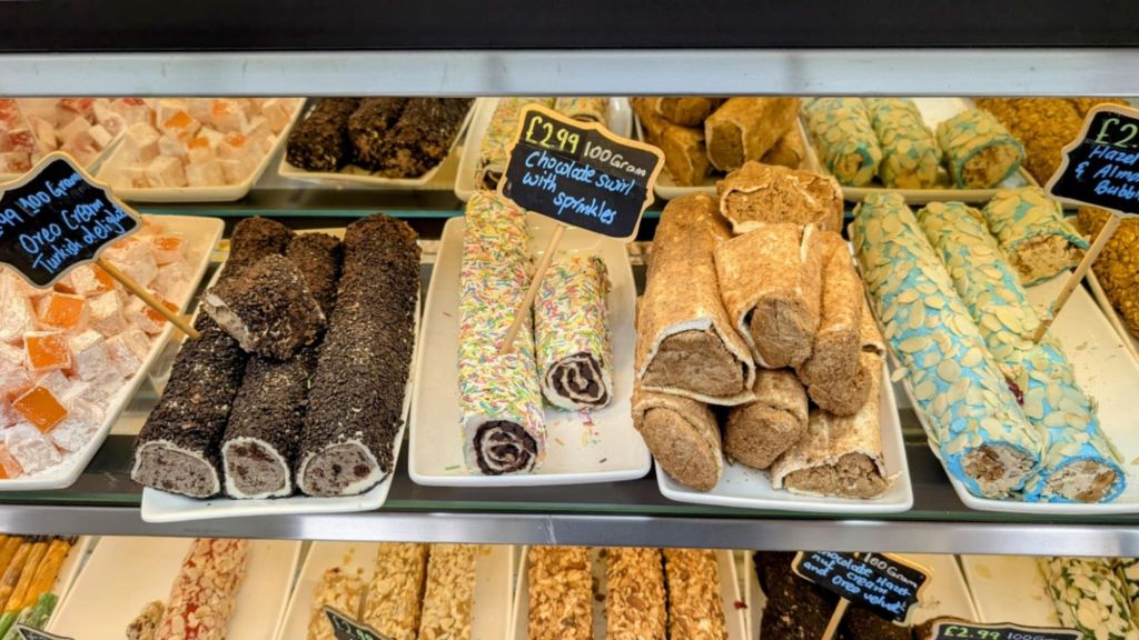 My son’s attention was immediately captured by a colourful chocolate swirl, a beautiful concoction from the owner. He explained that it was his own invention, blending a popular Turkish dessert with a fun, British twist.