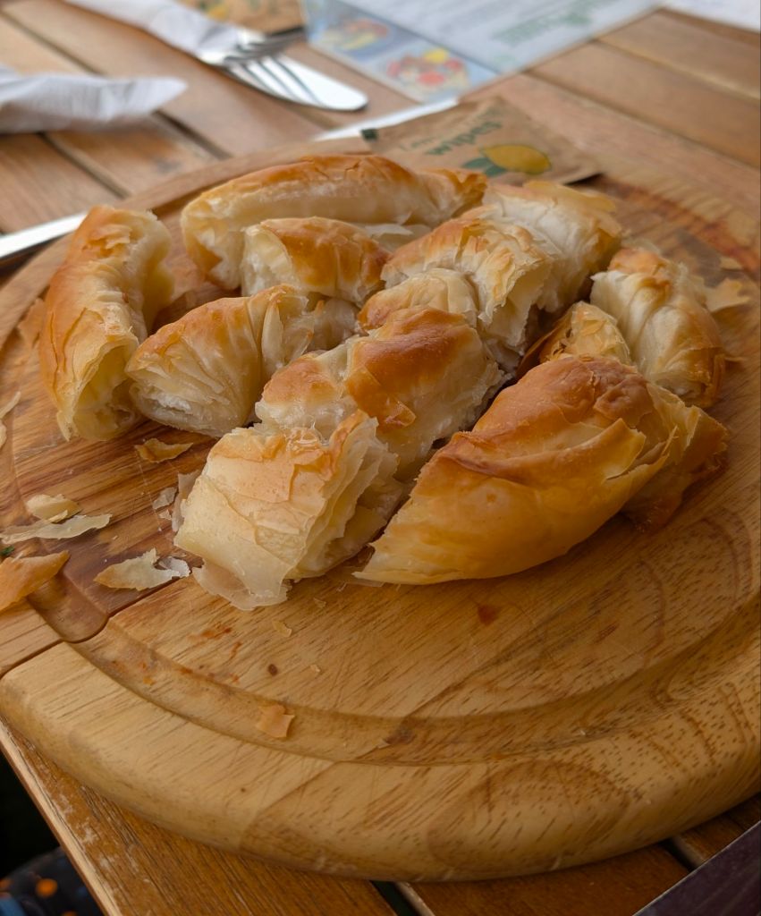 I also couldn’t resist trying a freshly made börek. These are a type of thin and flaky pastry from the Middle East, and while there were numerous options available, we opted for the feta cheese. It arrived warm, soft, and delicate. Biting into it, the pastry flaked off, creating a satisfying mess and releasing a warm, comforting aroma of freshly baked goods that gave me a fuzzy feeling.