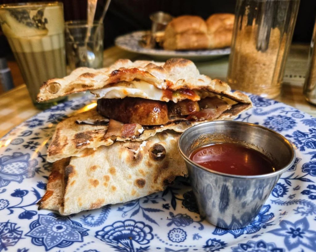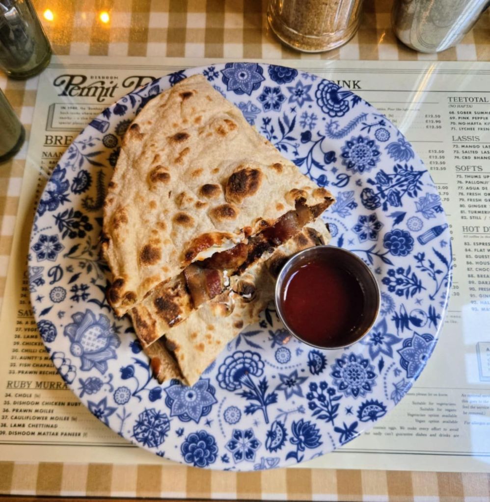 Make no mistake, the Wrestlers Roll is an absolute behemoth. Filled with the same smoked streaky bacon and peppery pork sausages as The Full Permit, along with a runny-yolked egg. It is an unapologetically messy and fun dish, with the menu even challenging you to “grapple” with it. The chilli jam added a vibrant, slightly spicy flavour, and the naan itself was light and not even remotely stodgy, holding everything together perfectly.