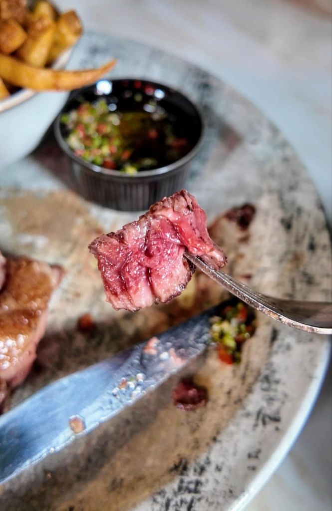 The steak was a thing of absolute beauty. Served with homemade triple-cooked chips and a vibrant chimichurri sauce. The minimalist plating ensured all focus was on the meat. This is a steak that demands attention and is truly proud of what it is and where it is from. No sauce needed!