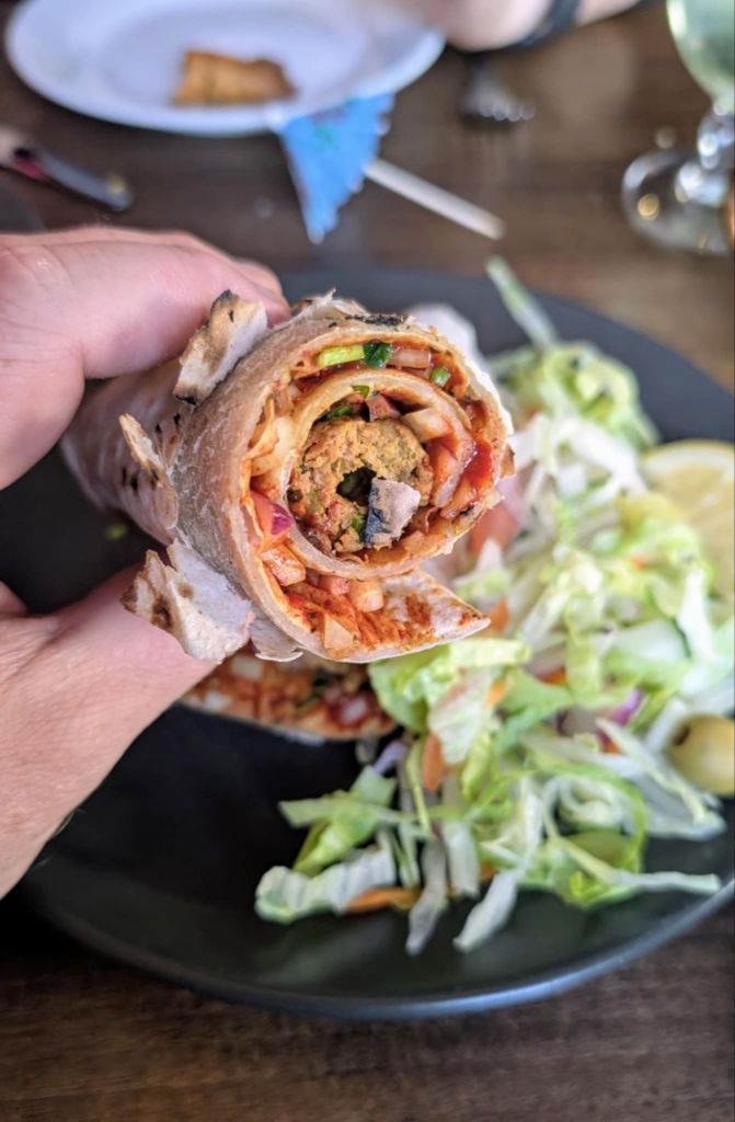 For starters, we opted for the Fish Fry and the Sheek Kebab Roti. The Fish Fry was a generous portion, with each piece being a significant size and crispy on the outside with a delicate, lightly spiced flavour, giving way to soft white fish inside. The creamy dipping sauce elevated the dish, bringing it to life with a tangy flavour.