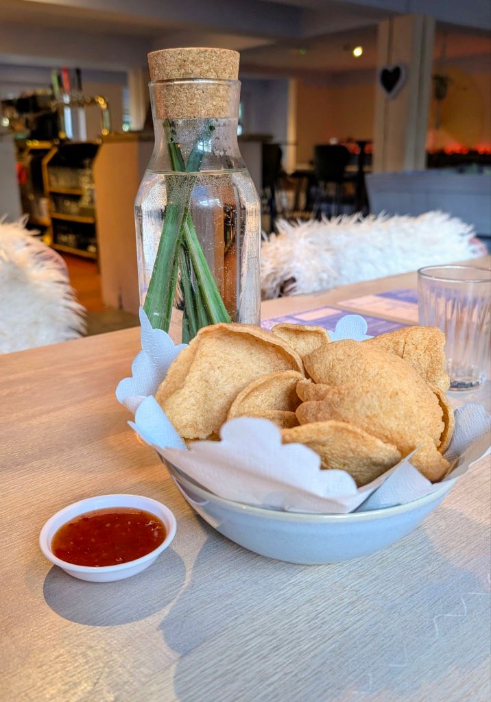 I was genuinely surprised by the quality of the prawn crackers. They were a far cry away from those light airy ones you find in the cheaper Thai restaurants and actually felt like proper crackers. They were very thick and had a more earthy colour that was followed by a more robust flavour. I really enjoyed crunching into them and the sweet chili sauce was JUST about enough to serve the large portion.