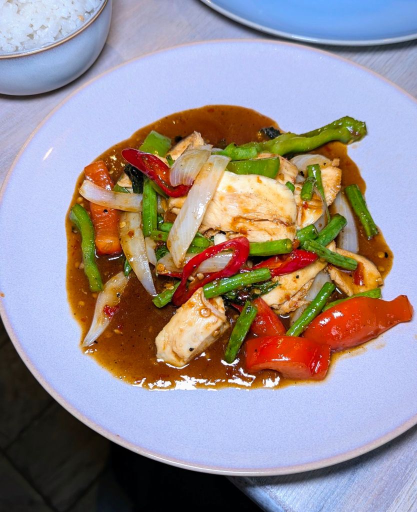 The Pad Kea Pow stir-fry is a dish I wouldn’t normally order but I was immediately struck by the quality of the juicy chunks of thick-cut chicken, which looked lovely swimming in their black bean sauce. The accompanying red and green vegetables not only added a feisty crunch but also a variety of vibrant colours and flavours. There was so much going on in this dish that I found myself repeatedly going back for just one more taste.