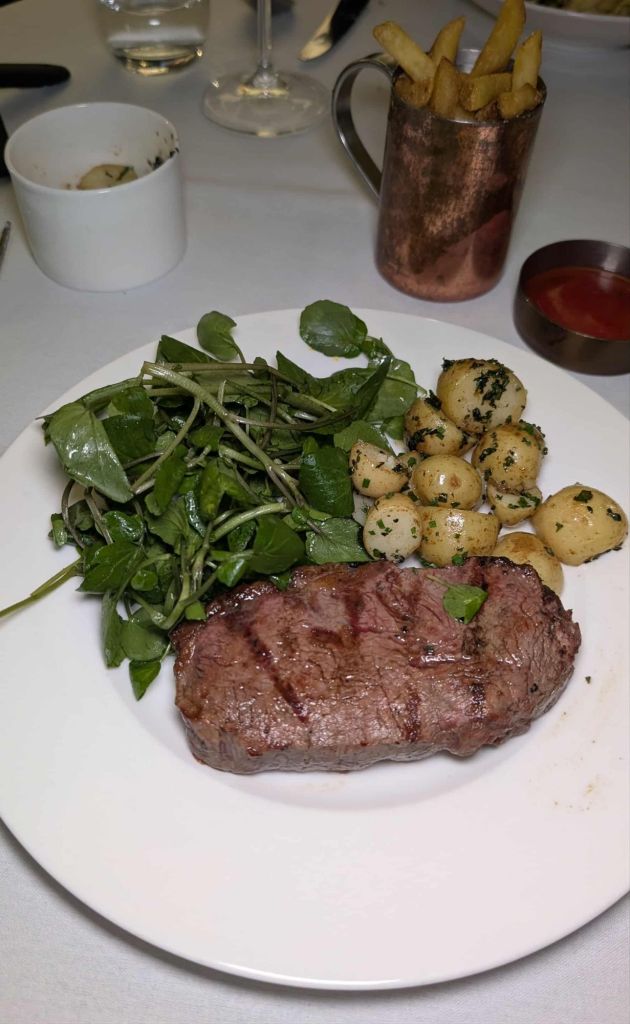 Parkers Tavern is known for its impressive wine cellar, but I was particularly impressed to learn they partner with wineries specifically to optimise their pairings. The menu offers suggestions with selected dishes, which was a nice touch. For a wine lover who lacks deep knowledge, this really helps optimise the experience and even educates you along the way. For example, the sharer rib eye steak came with a recommendation for a Henschke ‘Keyneton Euphonium’ 2019, Shiraz—a fruity yet bold French red that impressed my guest so much she’s already looking to order more for herself.