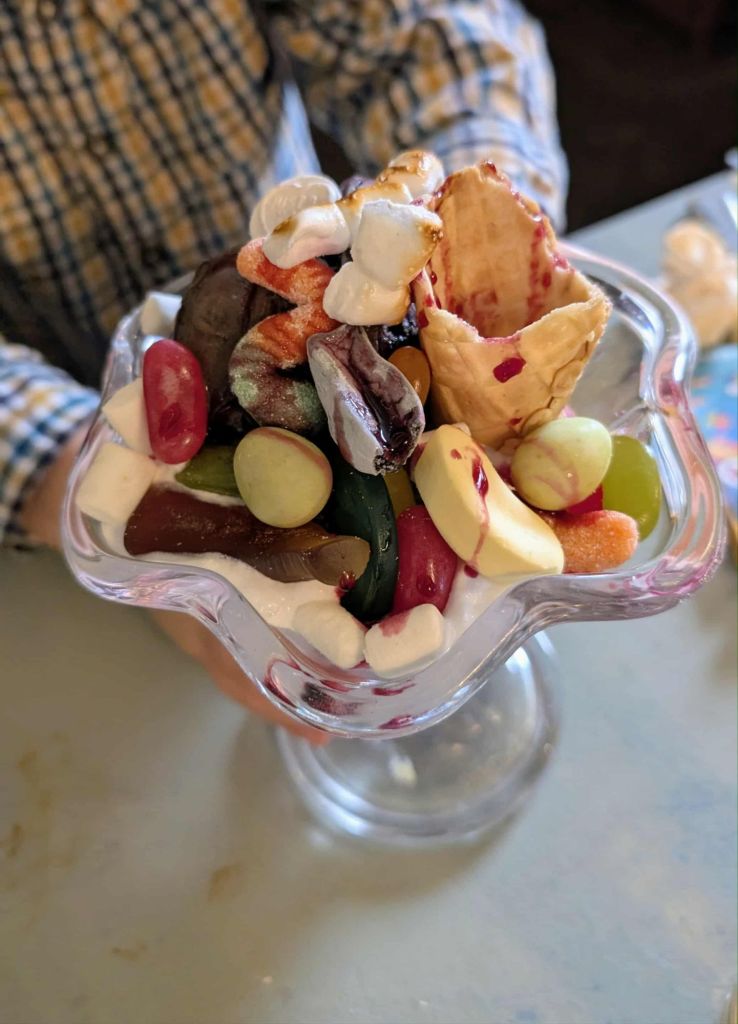We made the foolish mistake of letting my two-year-old son pick his dessert. This absolute monstrosity was a concoction of numerous different sweets atop two generous scoops of ice cream (one vanilla, one chocolate). It was more than just a dish of sugar and E numbers; it was an overstimulation of the senses with its vibrant colours and textures. It made me feel sick just looking at it, but that was clearly the intention. My son absolutely loved it, and this mountain-sized tribute to diabetes gave my wife and me a glorious ten to fifteen minutes of solid silence to enjoy the last glass of wine from our bottle!