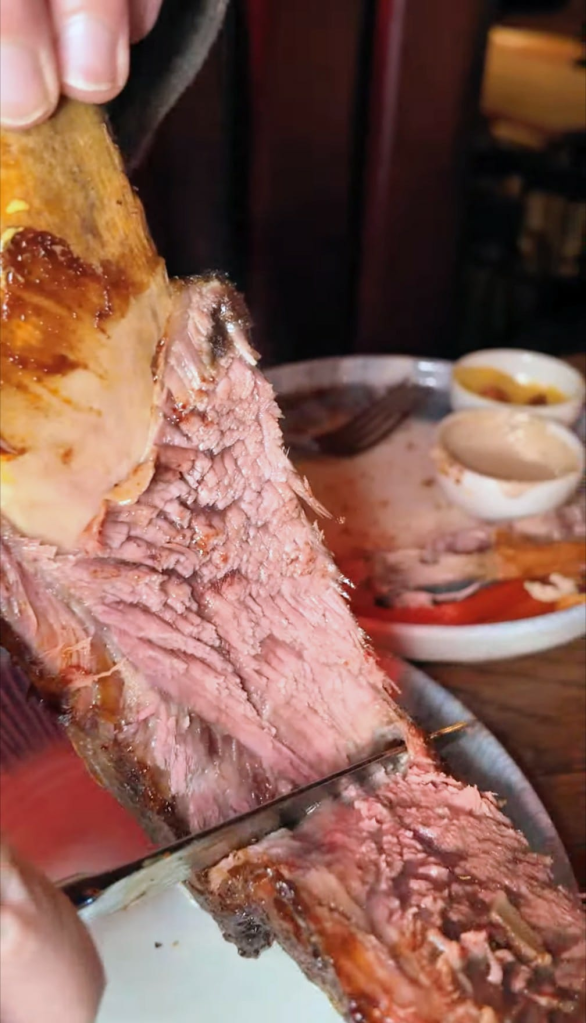 A single beef rib was buried beneath the pile of pork and chicken – a delicious surprise. The rib was generous in size and beer-braised for a complex flavour profile. We ran a knife down the bone with minimal effort to reveal a lovely pink slice of beef with a thick, caramelised crust.